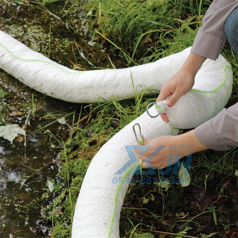 吸油索由具有親斥水性的聚丙烯無紡布包裹吸附顆粒和專業制作的浮體加工而成,可以根據客戶的要求生產不同的規格的產品。